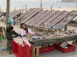 A comer a Nazaré. Ya no es el típico pueblecito de pescadores, sino un enclave turístico. Nos ha abordado una señora para que negociáramos la comida en su restaurante, y al salir me pregunta si yo era la guía del grupo (se ve que me ha visto marimandona), y como tengo la manía de mirar a la cara cuando me hablan, me he percatado demasiado tarde que tenía dinero en la mano para darme una comisión, ¡ya le había contestado que no! La próxima vez miraré el monedero, jejeje.